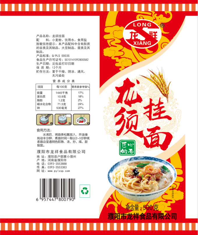 濮陽(yáng)市龍祥食品有限公司位于河南省濮陽(yáng)縣戶部寨鎮(zhèn)小濮州,始建于1994年,前期投資200萬(wàn)元,經(jīng)過幾年的努力,大力開發(fā)市場(chǎng),由于市場(chǎng)的需求量急劇上升,出現(xiàn)供不應(yīng)求,于2004年擴(kuò)建,建成一座新型的現(xiàn)代化面粉加工企業(yè),并擁有全國(guó)先進(jìn)全自動(dòng)生產(chǎn)設(shè)備一套,產(chǎn)量由以前的100噸/天,提高到現(xiàn)在400噸/天。 2012年再次擴(kuò)大規(guī)模申請(qǐng)為濮陽(yáng)市龍祥食品有限公司,注冊(cè)資金500萬(wàn)元。2012年又投資800萬(wàn)元新建掛面生產(chǎn)線一條,日產(chǎn)掛面50噸。龍祥食品有限公司現(xiàn)有職工120余人,總工程師1人,專業(yè)技術(shù)人員10人,經(jīng)濟(jì)師1人,會(huì)計(jì)師1人,銷售人員2人,優(yōu)秀專業(yè)人員20余人?! ↓埾楣咀詣?chuàng)建以來(lái),社會(huì)效益十分可觀。公司一直以“今天的質(zhì)量,明天的市場(chǎng)”為信念,“一切為了客戶需求,竭誠(chéng)追求完美品質(zhì)”為企業(yè)宗旨,走專業(yè)化經(jīng)營(yíng)和職業(yè)化管理的路子。